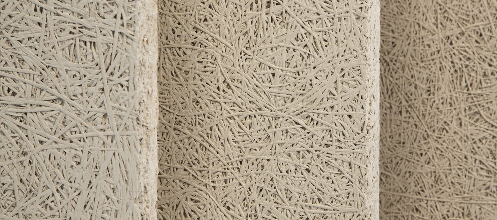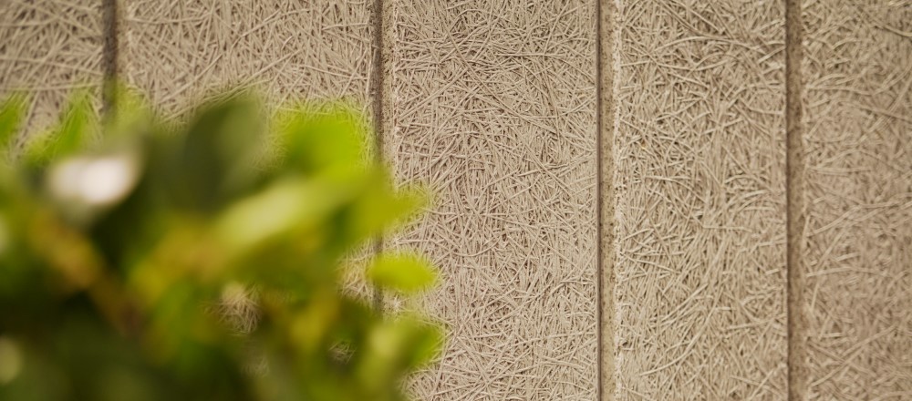 Древесные волокна в сочетании с цементом и водой образуют прочный, экологически чистый материал с оригинальной текстурой.